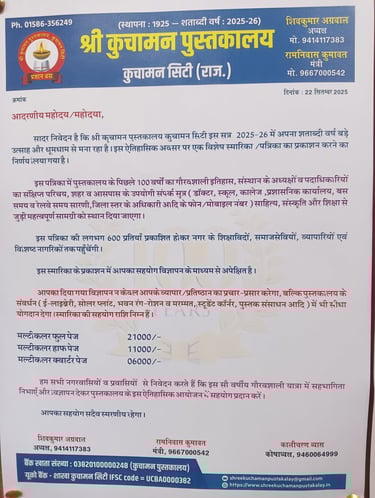 इस पोर्टल की स्थापना कुमारी माधुरी मोहाता की स्मृति में गोपाष्टमी- विश्वकर्मा जयन्ती पर ऊँट द्वारा जीरा खाकर की गई !